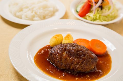 「手挽きミンチの特製ハンバーグ」や「牛肉のカリー」なども好評で、本格派の味を求めて足繁く通う常連客も多数!